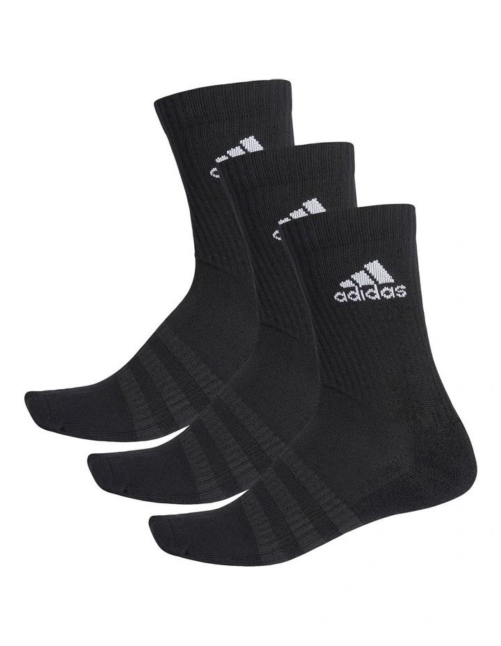 Made for all-day comfort, this trio of crew socks offers heel-to-toe cushioning and a cotton-rich build. A smooth toe seam and knit-in arch support enhance the fit and feel. Clean adidas branding completes the classic athletic look.