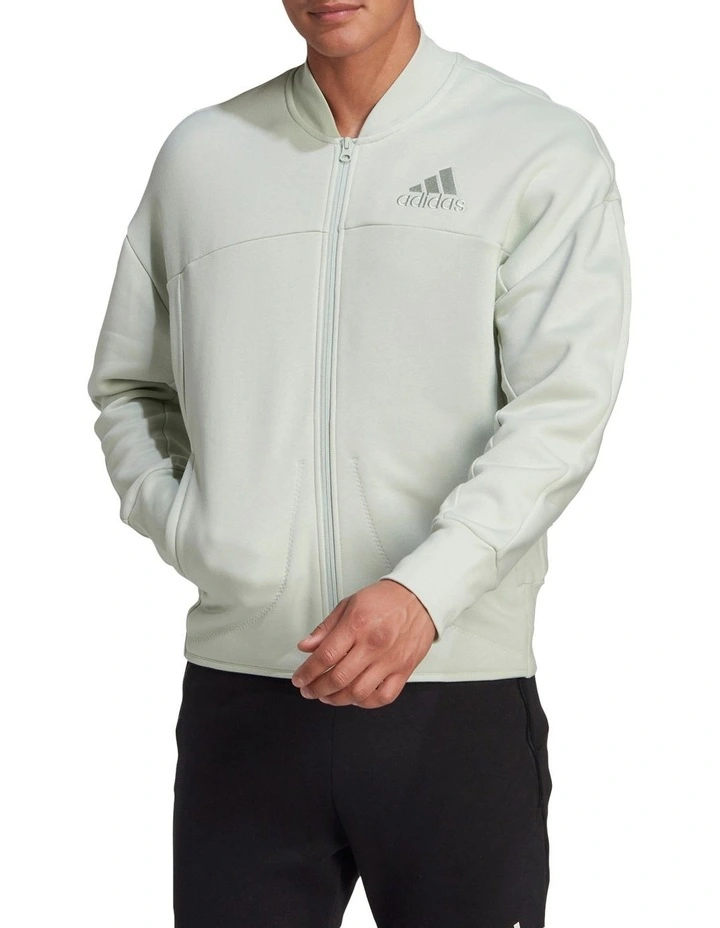 When it comes to an easy reward, fleece material is where it’s at. So after your workout we’re talking immediately after or the next day when your muscles are really feeling it slip into this adidas track top. Also, just slip into it whenever. Because there’s no bad time for comfort, and this jacket is packed with it. This jacket is made with natural and renewable materials as part of our journey to design out finite resources and help end plastic waste.
