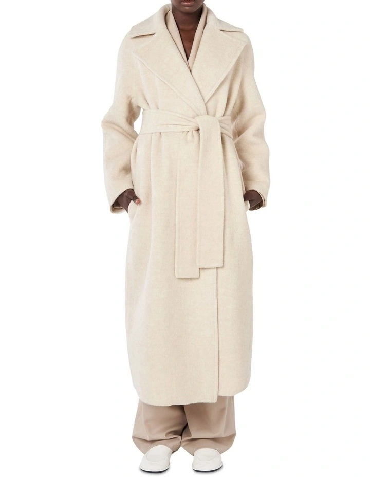 The Alpaca Wool Coat is a chic and cozy essential to elevate your winter wardrobe. The Alpaca Wool Coat made in a heavy wool and alpaca felted, brushed fabric in a beautiful snow colourway. Highlighted with a detachable belt to cinch your waist, handy side pockets and a functional back vent. Featuring a luxurious wide lapel and collar, finished with hand top stitching.