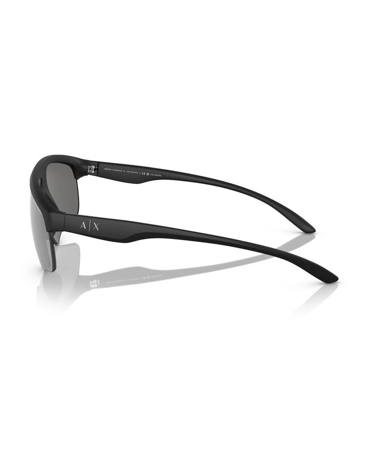 A wraparound shield with a sporty edge complete with flashy mirror lenses. Wraparound shape in a sporty matte color palette with one shiny black color option. Eye-catching flashy mirror lenses and one Polar SKU Injected temple with bevel for a dynamic look and A|X printed logo for an extra touch of branding.