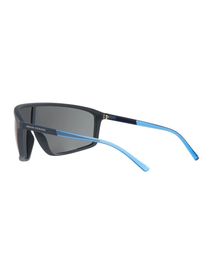 AX brings a sporty edge to its unmistakable style. The city turns into a catwalk with these wraparound shield shape and mirrored lenses shades. Wraparound shield shape and new thin temple with transparent temple tip.