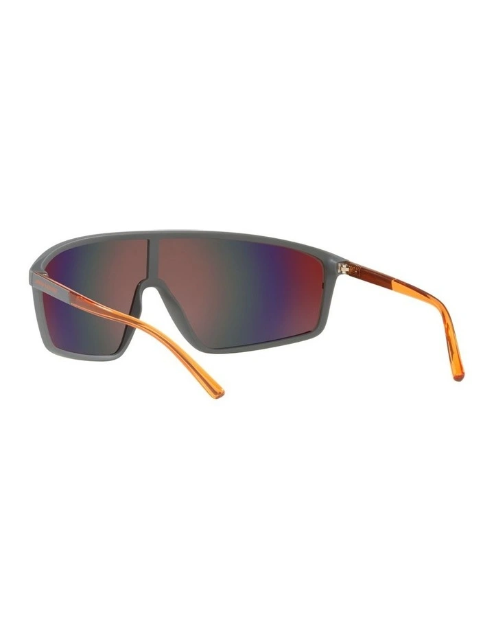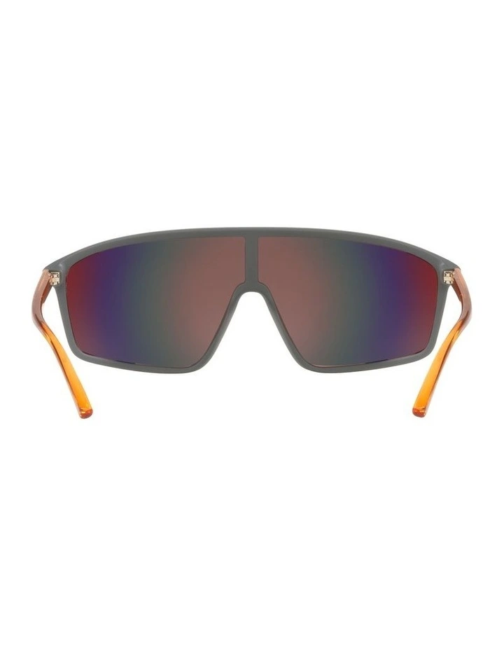 AX brings a sporty edge to its unmistakable style. The city turns into a catwalk with these wraparound shield shape and mirrored lenses shades. Wraparound shield shape and new thin temple with transparent temple tip.