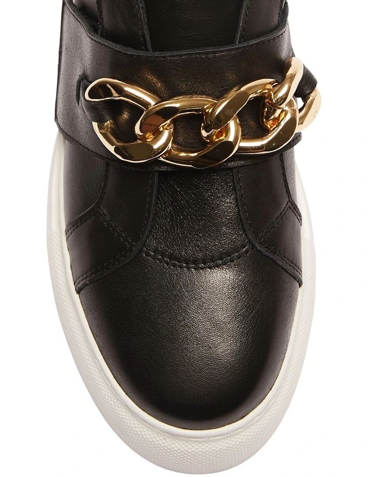 Slip into BABYLON for a casual accompaniment to smart separates. The low top silhouette is crafted with a leather upper, fastened with a velcro strap accented with a chain detailing then set on a raised flatform sole. Co-ordinate the hardware by teaming this with matching coloured jewellery.