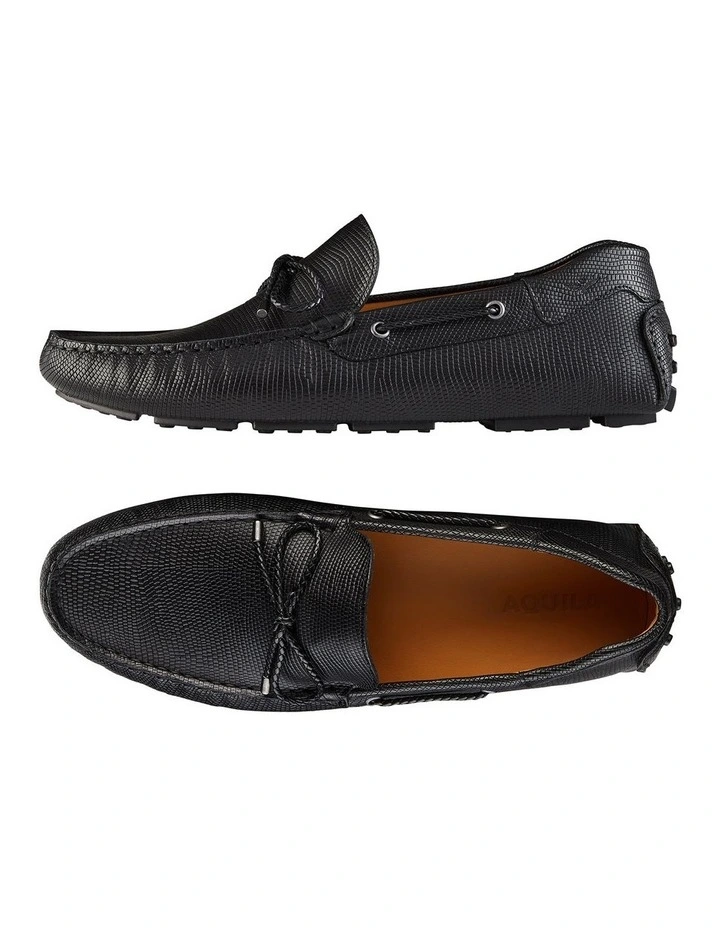 Mens Driving Shoes are commonly overlooked however they are possibly the most versatile addition to your warm weather shoe collection. The Balfort in black is our must-have of the season. Made in Portugal from an embossed leather upper, the rubber moccasin sole ensures stability and comfort, perfect for all your events this season.