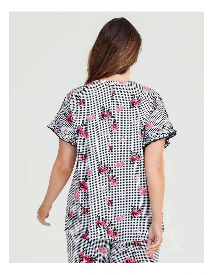 Indulge in the ultimate combination of comfort and style with the Bamboo Gingham Floral Top. Made from soft and natural bamboo fabric with added stretch, this top will have you feeling as though you’re wrapped in a cozy hug. The round neckline and short sleeves with frill detail add a touch of elegance, while the playful gingham and floral design make a bold statement. Whether you’re lounging around the house or drifting off to sleep this top is perfect for a relaxed chic look. So, slip into the Bamboo Gingham PJ Top and get ready to experience the ultimate in comfort and style.