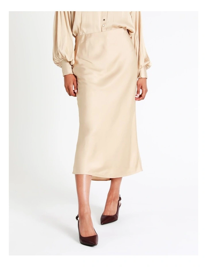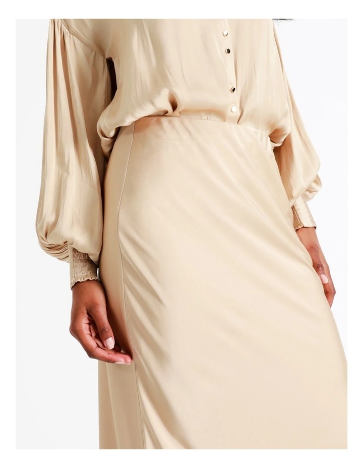 Basque Recycled Satin Slip Skirt in Beige