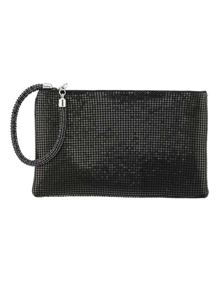 This mesh clutch bag with crystal wristlet strap is both functional and fashionable.