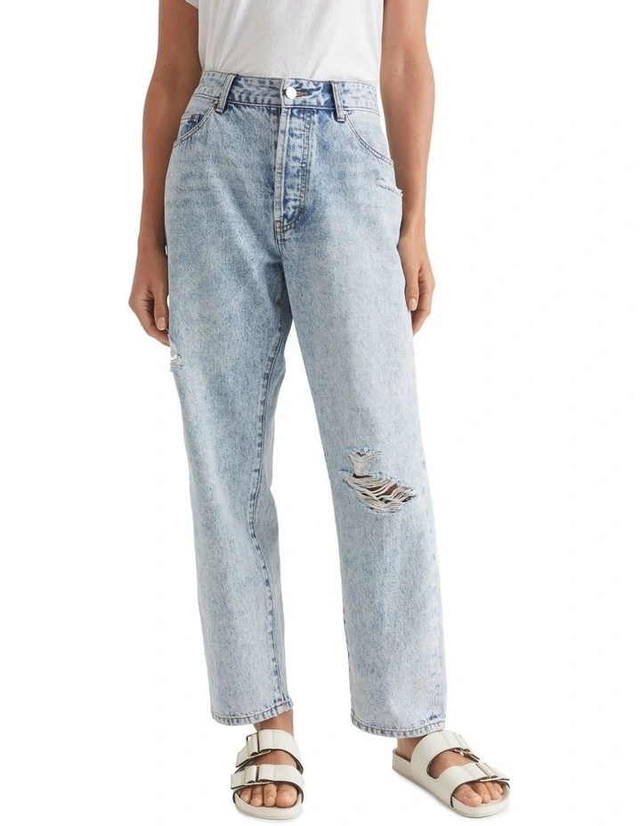 A classic style, these boyfriend jeans are a wardrobe essential. The structured denim skims the hips and falls into a wide silhouette, cutting off before the ankle for a flattering fit. These jeans are designed with distressed details and have pockets at the front and back for added practicality. The jeans have a matching pair in the Girls range, the Mini Me Boyfriend Jean, as part of our Mini Me capsule collection.