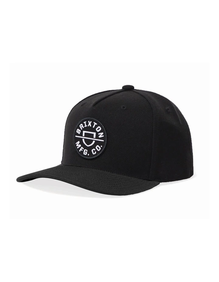 The Crest MP is a structured 5-panel snapback with a lightly curved brim. It features a Bureo NetPlus visor made from recycled fishing nets and is finished with an embroidered Brixton patch.