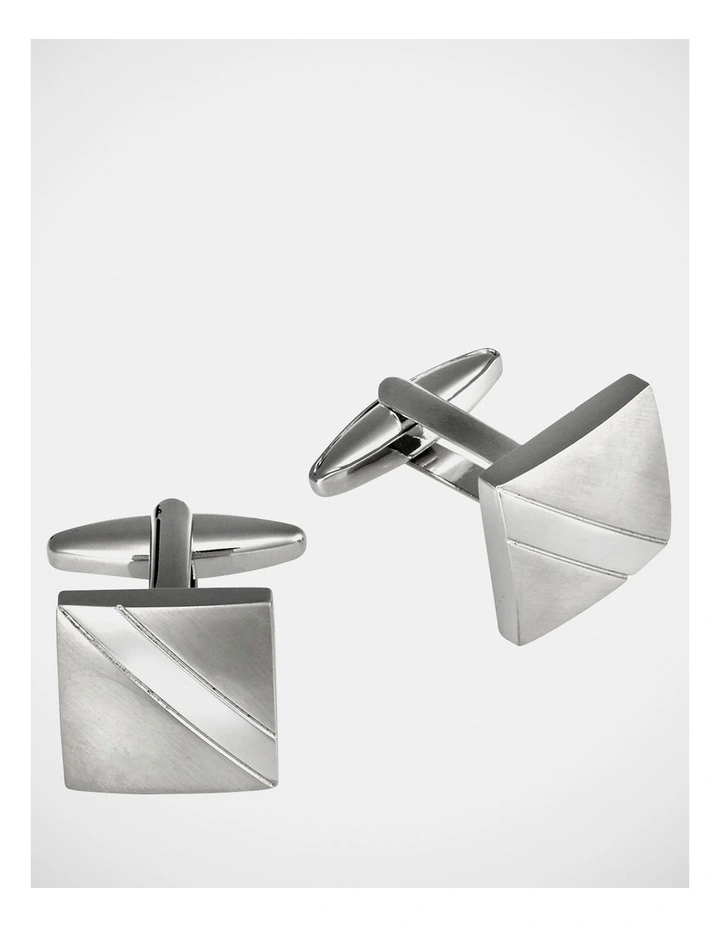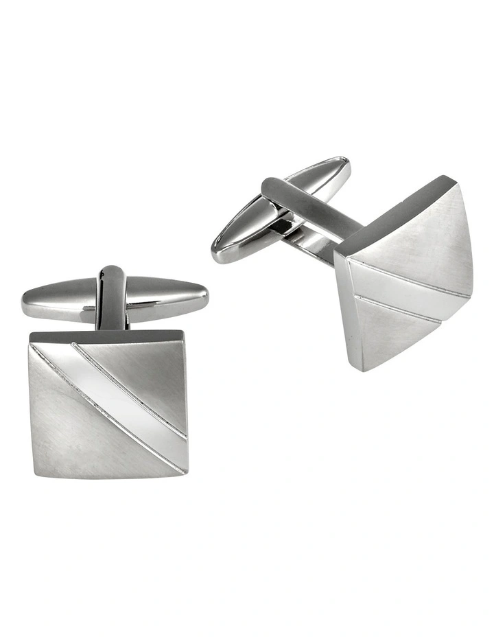 Blaq brushed rhodium with polished stripe cufflinks in Silver.