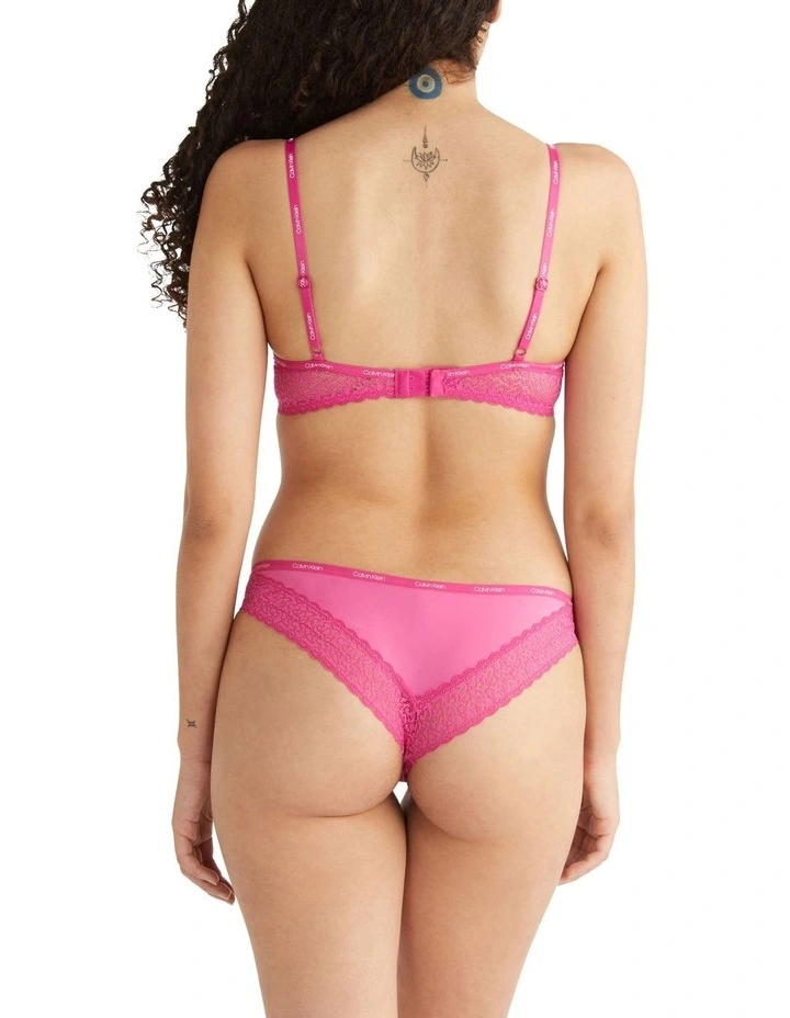 A fresh, new lingerie line with a playful spirit, FLIRTY brings bright colours and modern lace to feminine silhouettes that are ultra sleek to the touch. This brazilian brief features a microfibre jersey, medium rise waist, scalloped lace trims, and a signature elastic waistband.
