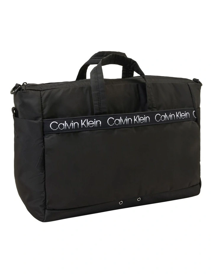 A flexible duffle bag with dual carry handles and an adjustable shoulder strap. fitted with a main zip compartment and interior slip pocket.