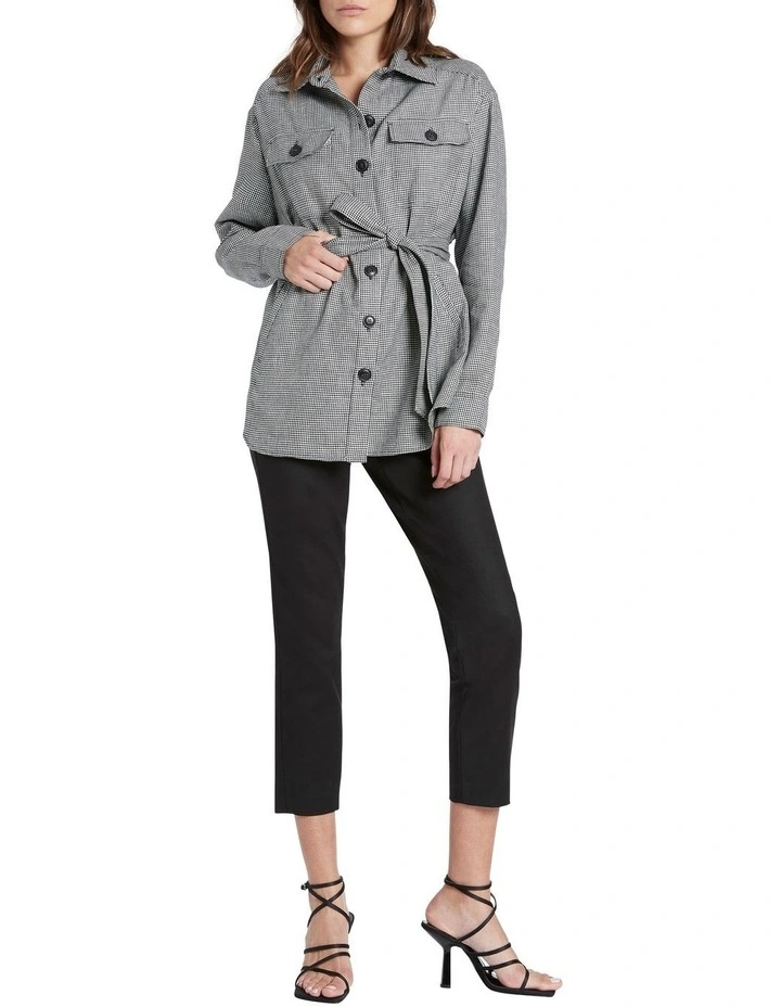 Designed for easy layering, this shaket reveals a classic black and ivory dogtooth patterning, made from a sturdy yet soft cotton and linen blend fabrication. Creating a relaxed fit, the shaket fastens with large black buttons at centre-front, with further button detailing offered in the button-down patch pockets at the chest and a self tie fabric belt.