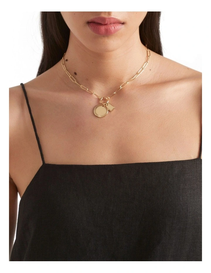 Add a little something extra to your look with this chain link necklace, finished with two pendants. The necklace closes with a clasp at the back.