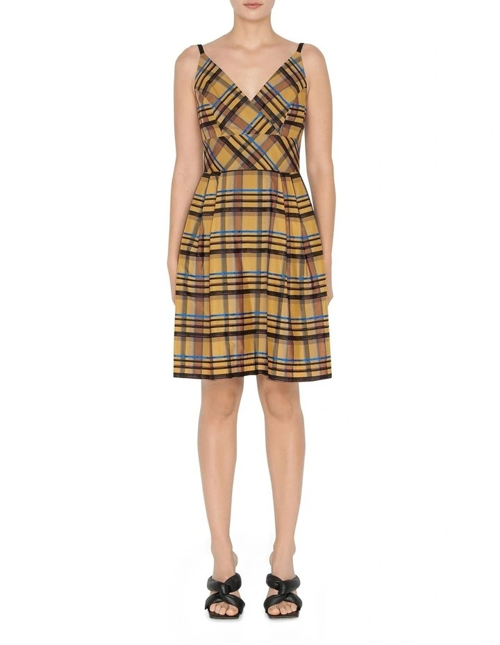 Crafted from Italian soft acetate check, this dress features contrast crepe straps and back tie detail. The feminine detailing and sculpting at the waist create a defining silhouette. Pair it back with heels. Made in Vietnam.