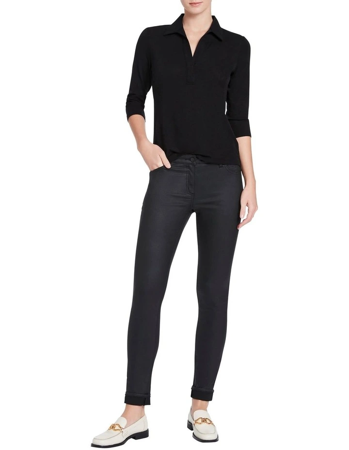 Revealing essential styling to carry you through winter, spring and beyond, these jeans flaunt a beautiful coated black finish, making pairing back within your wardrobe an absolute breeze. Featuring stretch for comfort, the jeans descend from a classic mid-rise to elongate the leg within a super skinny fit, completed by a button and fly front closure, and pockets front and back.