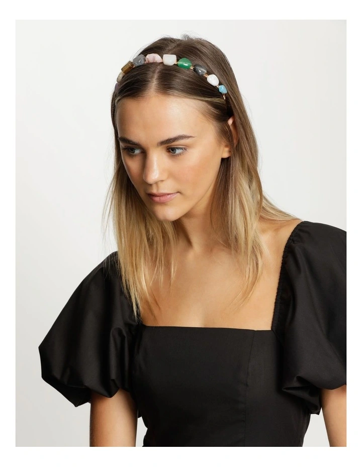 Features: Headband with coloured stone detail, available in assorted colours.