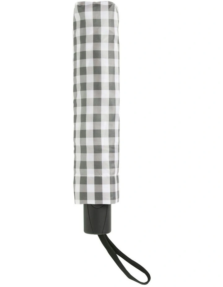 Compact in size, this umbrella is an everyday essential. It features a gingham pattern and subtle Seed Heritage branding. The umbrella opens with a push button and includes a slip cover.