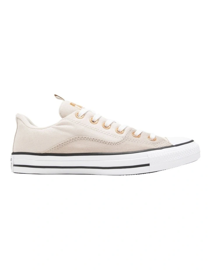 Designed for all-day comfort and versatility, the Chuck Taylor All Star Rave combines timeless design elements with an expressive, wavy forefoot overlay. This edition takes your style even further, with subtle metal hits and colorblocked neutrals. Light padding at the tongue and collar offer additional support, while an elongated heel and tongue loop allow you to slip in and out with ease.