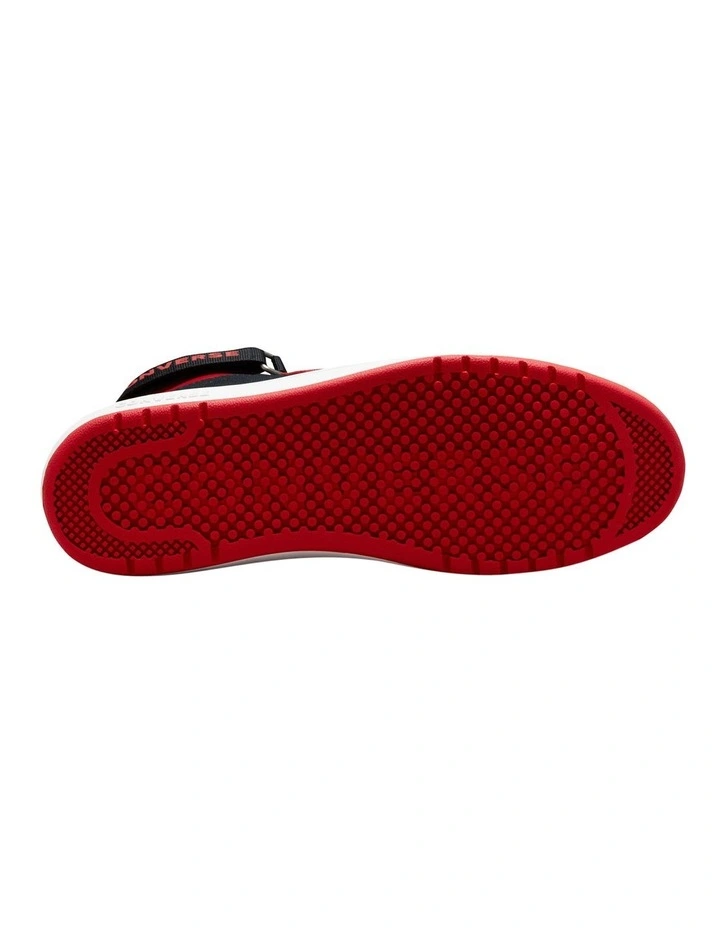 - Mid-top sneaker with synthetic upper and hits of canvas