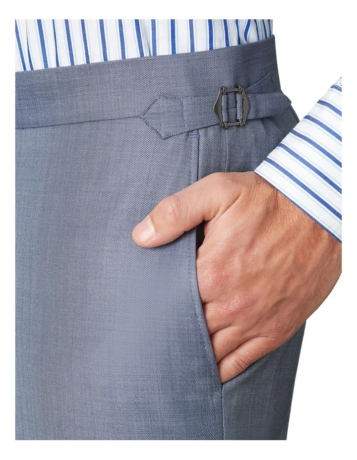We’ve created the new Corsali suit in an on-trend light blue hue that is both stylish and fun. It’s crafted from 100% wool woven in Italy, and is designed in a super 120s tropical weave, so it’s appropriate for the warmer months.