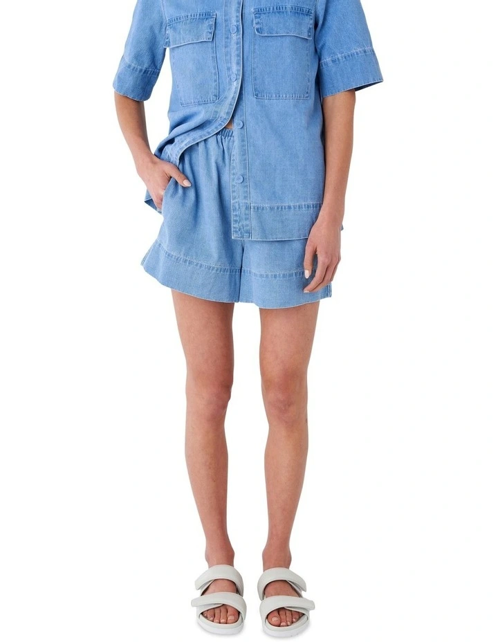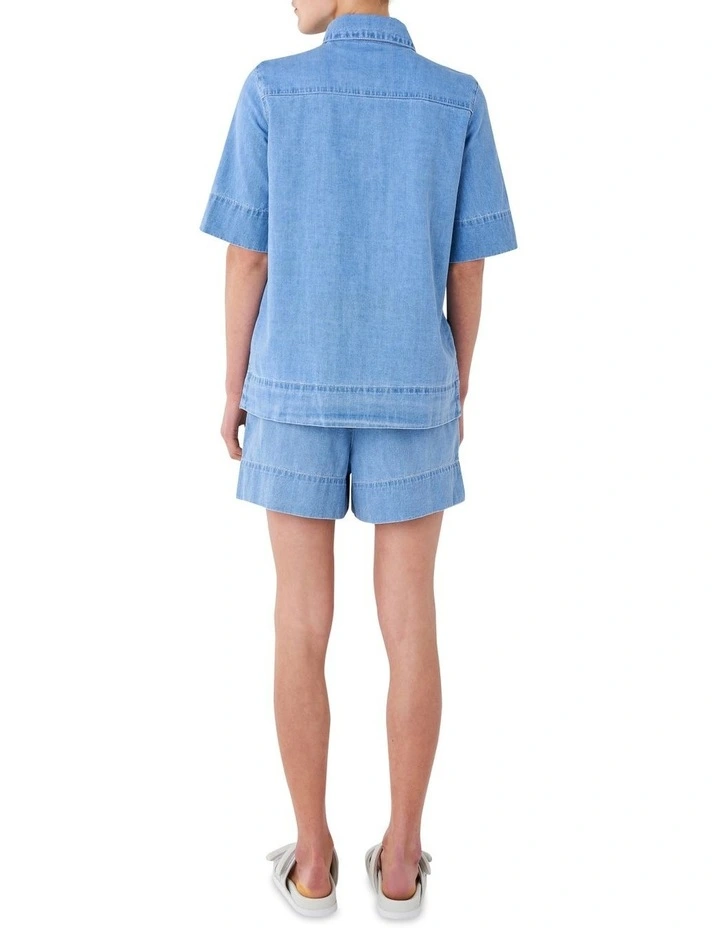 Our Cotton Linen Denim shorts in an updated light wash denim for versatile wear during spring/summer.