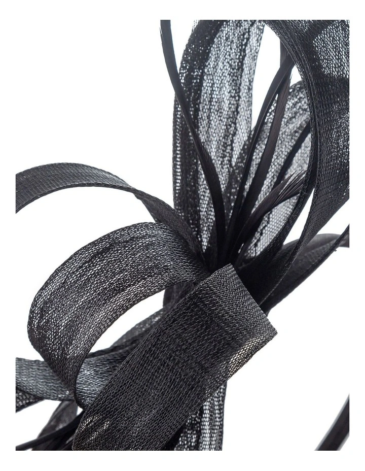 An easy to wear fascinator featuring a bow detail and matching feathers.