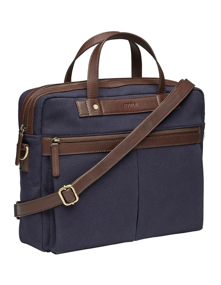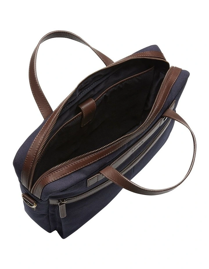 This mens briefcase is your new favourite office companion. Made with a canvas outer and a durable cow hide trim, the Cruiser will serve you well, all week long. The detachable leather strap will effortlessly hang over your shoulder, perfect for your weekday commute or a day running errands.