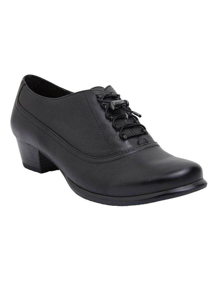 DAMIAN offers the best of corporate convenience, dressed with a comfortable block heel and secure non-slip grip sole. Featuring elasticated lace detail, this style is versatile enough complete your workwear ensemble with everything from stockings to pencil skirts! Approx. 3cm heel Leather upper Synthetic lining Synthetic sole Wide comfort fit (C fit)