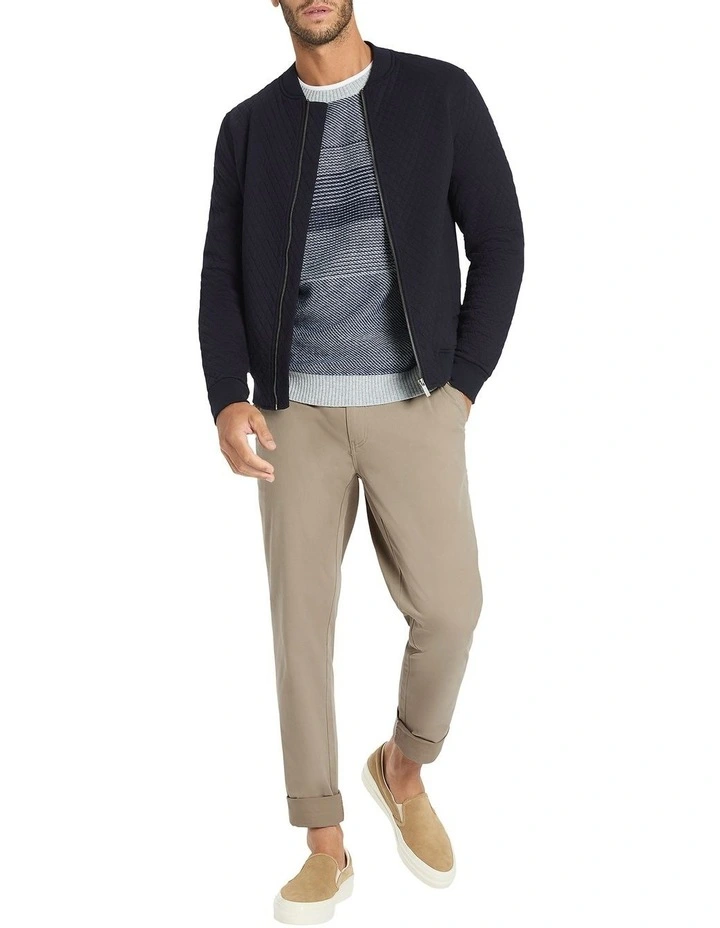 Elevating classic bomber styling with super soft quilting, this midnight blue bomber jacket delivers effortless warmth within a comfortable cotton blend. Fastening at the front with an exposed metal zip, the jacket delivers relaxed shaping drawn in at the collar, cuffs and hem with soft-touch rib trim, with further detail offered in open pocketing at the waist.