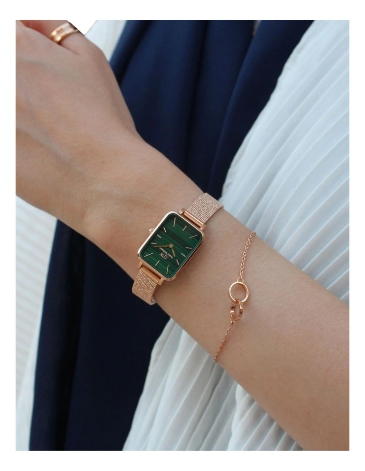 Daniel Wellington Quadro Pressed Evergold Green Dial Stainless Steel Watch In Gold