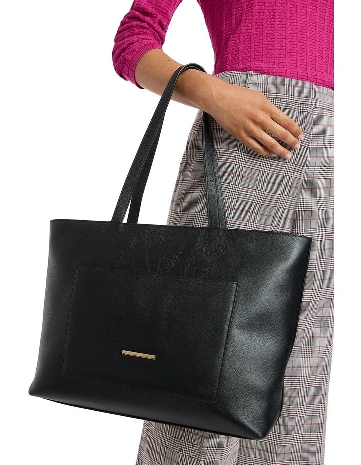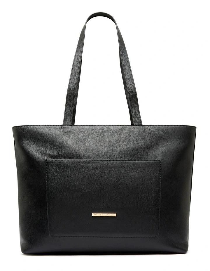 Delivering on both form and function, this chic leather tote looks crisp in black NDM leather, featuring a secure zip closure up top and short shoulder straps with a 26cm drop. Beautifully sized, the bag continues to appeal with its functionality, showing off a padded laptop pocket and drink bottle holder inside, and a large external pocket placed both at the front and back of the bag.