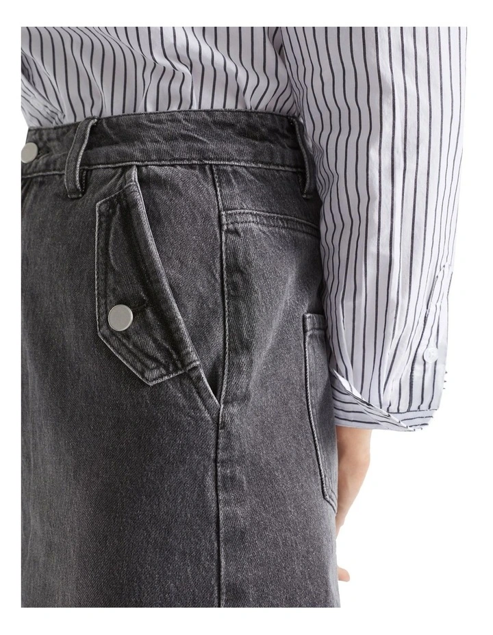In rigid denim, this midi skirt is a wardrobe essential. It has silver dome details and falls to a midi length with a wide hem. By choosing our cotton products, you are supporting our investment in the Better Cotton mission.