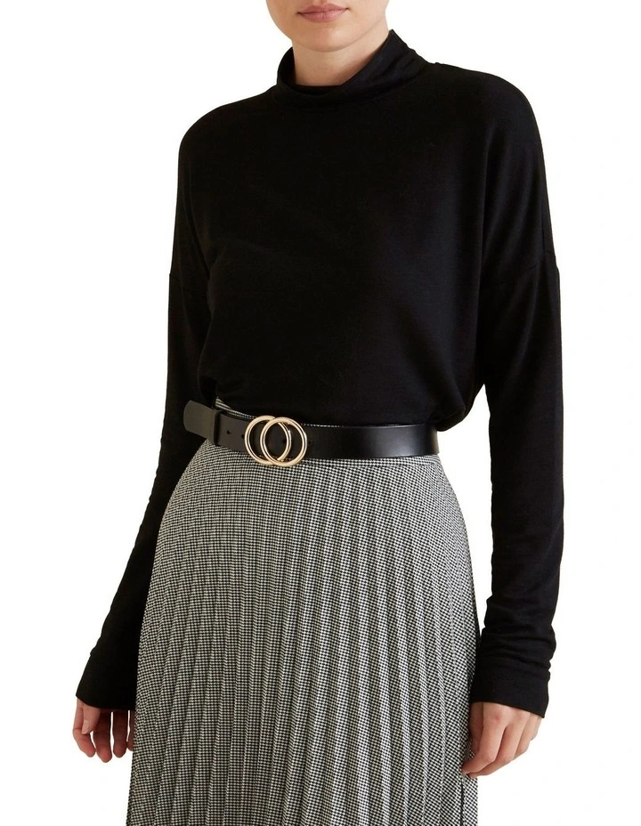 In a classic double ring design, this premium leather belt will go with any outfit and features a pull through and hook closure for the perfect fit.