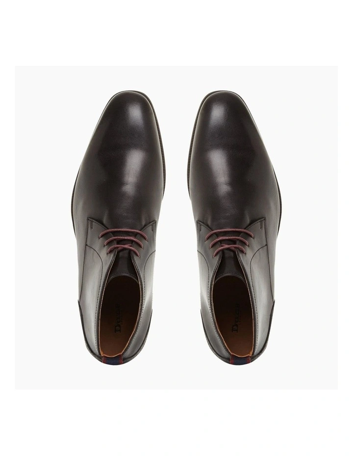 The Maidenn chukka boot from Dune London is a stylish daytime option. Designed with a contrasting low block heel and a handy rear tab. It has a contrasting panel on the back and a classic round toe.