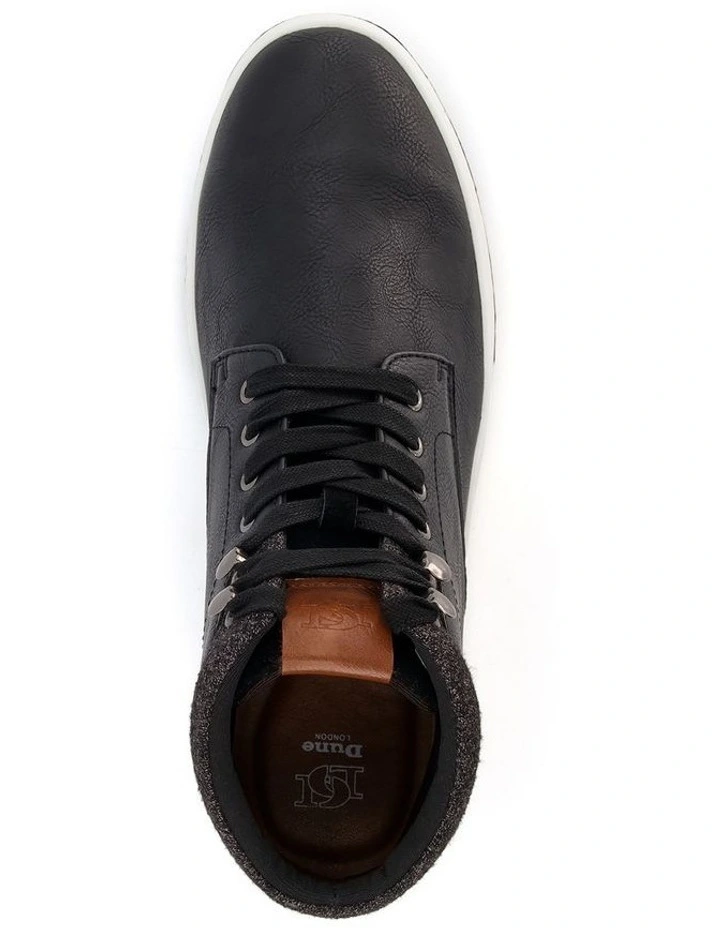 The Dune London Visit High-Top Trainers will complete your off-duty looks with it’s modern update on a classic design. Featuring hiking inspired laces, a contrasting lined cuff and a cup sole these will be your go-to style. The footbed has been built for all day comfort, making sure your foot feels secure and comfortable all day long.