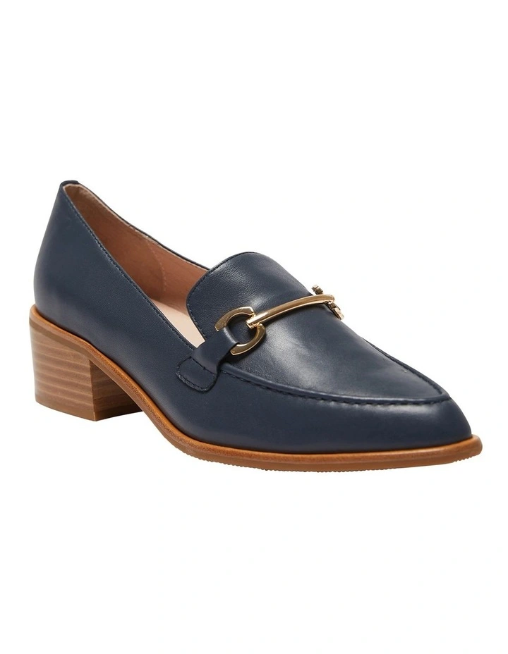 Indulge in modern sophistication with ELENA. This polished loafer is adorned with gold-toned horsebit detail and tapers to a sleek pointed toe. Elevated on a comfortable block heel, it is the perfect silhouette for creating your tailored look.