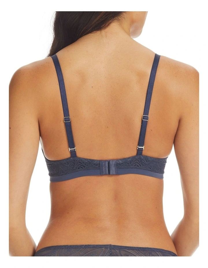 T Shirt bra with feminine yet graphic lace and silver hardware for a touch of glamour.
