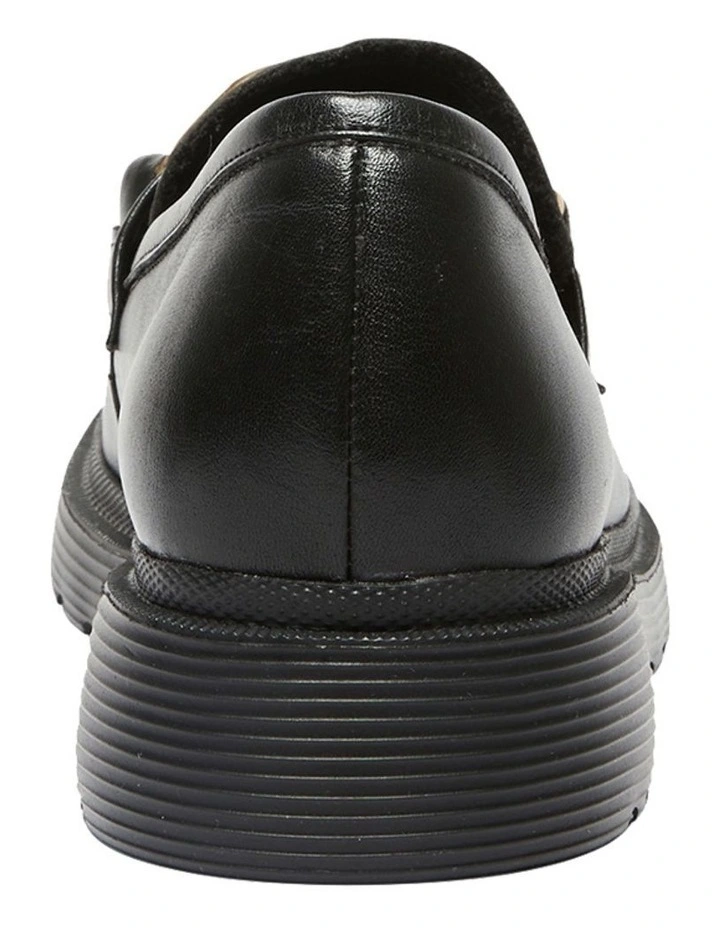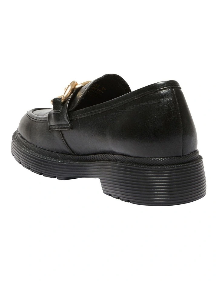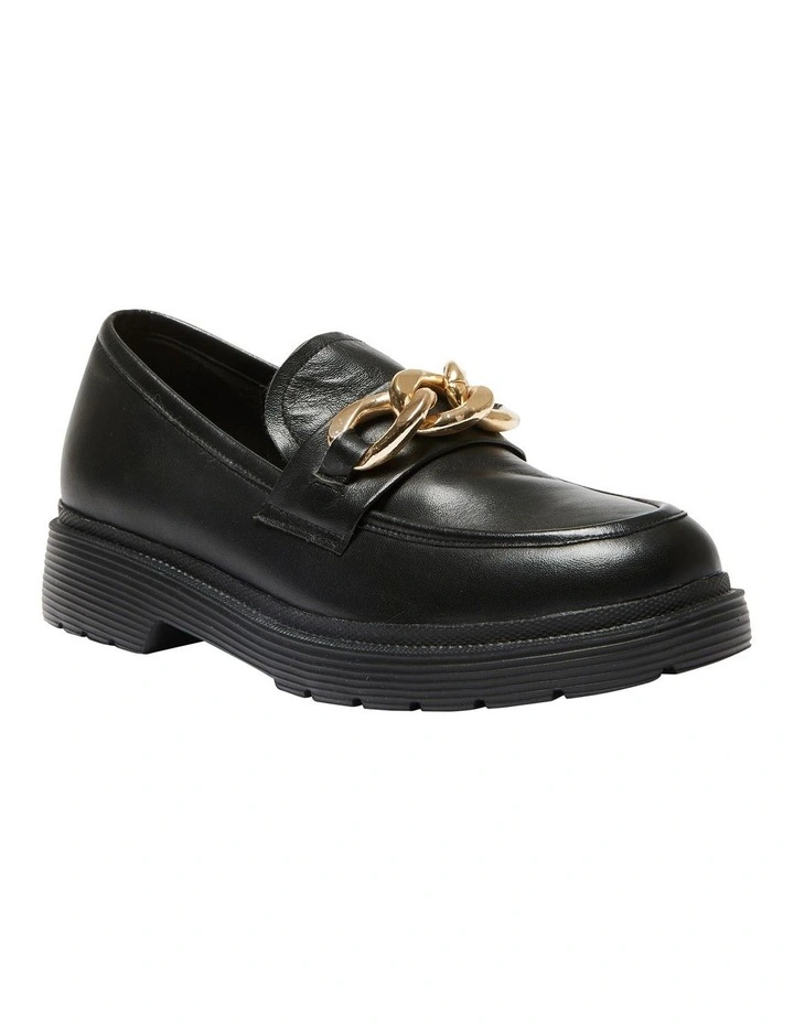 A chic wardrobe staple, ELOISE by Easy Steps combines comfort and versatility in its contemporary loafer silhouette. Elevated by gold-tone chain detailing across the penny strap, it tapers to a slender round toe and rests on a chunky layered sole. Style yours with a sweater and slip skirt for a cosy look.