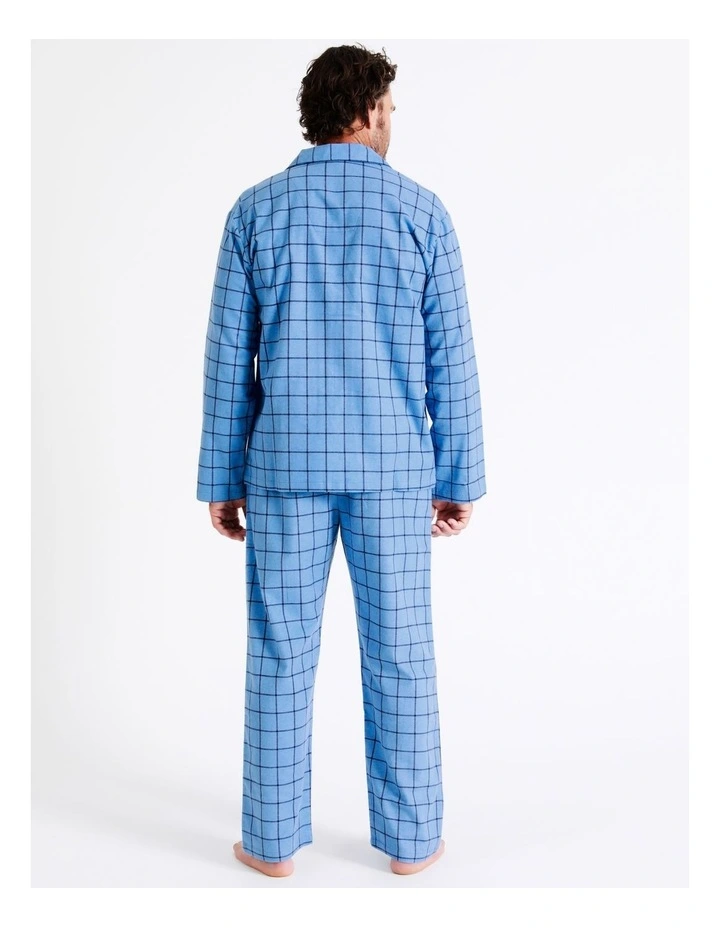 Reserve Essentials Long Sleeve Flannelette PJ Set 2 Tone Check in Blue