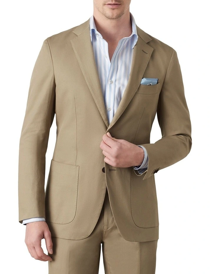 Made from GOTS-certified organic cotton and 1% elastane that has been woven in Italy into a dashing twill fabric, the Fairbanks is a dressy cotton jacket that can be paired with its matching trouser to create a handsome, lightweight suit. The elastane component adds natural stretch and give perfect for when youre on the run. The Fairbanks features a notch lapel, vintage-inspired horn buttons, working four-button surgeons cuffs, two patch pockets, while it is fully lined and with a half canvas construct to help add structure. There are additionally three internal pockets and Cupro lining with contrast white stitching.