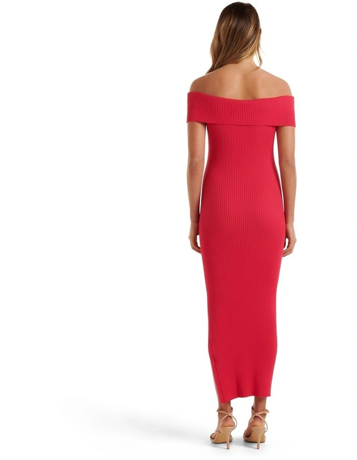 - A sleek knit dress with a feminine bardot neckline to style for any day or evening event