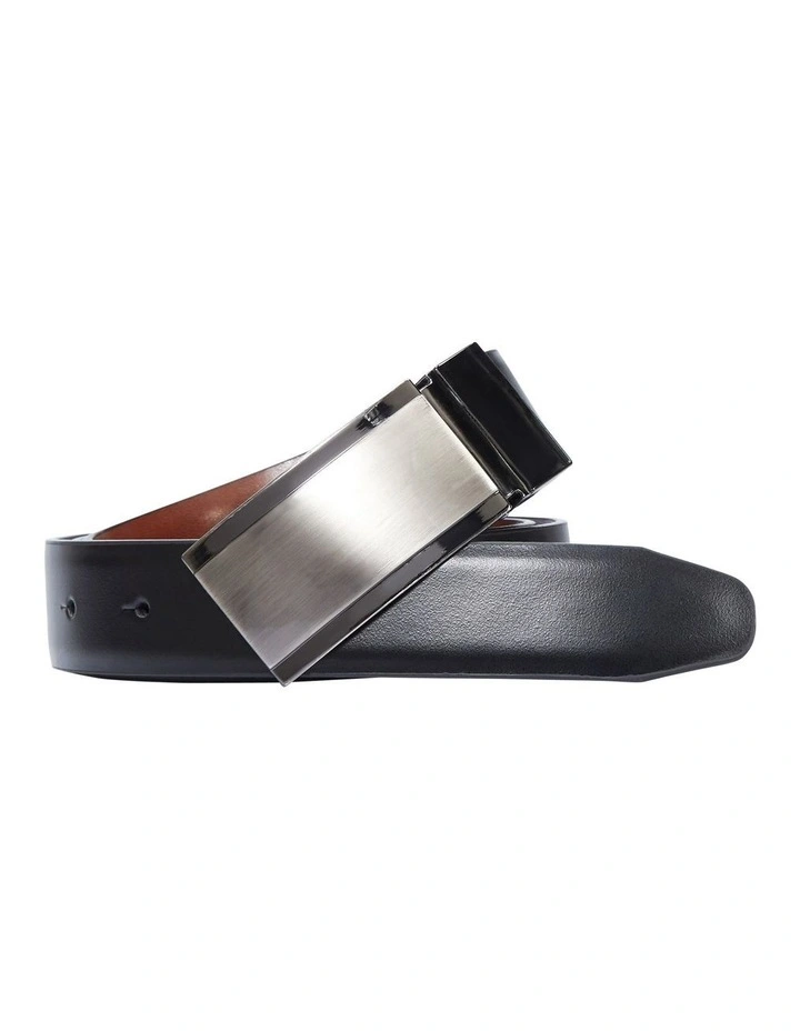 The Franklin Dress Belt from yd. is reversible, so whatever the mood, this belt has you covered. Featuring a multi-textured metal plate with a reversible strap, this belt can be both black or brown.