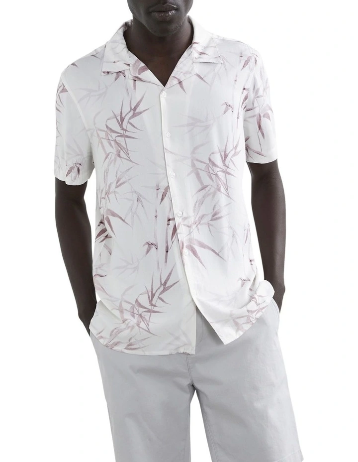 Our Bamboo Camp Collar Classic Fit Shirt is a bold piece for your summer wardrobe. It features a bamboo print, short sleeves, button down style, camp collar and a comfortable regular fit. This garment is made from Viscose, a viscose fibres made from naturally biodegradable wood pulp. Pair with French Connection’s Slim Chino Short and Hamish Canvas Sneaker. Our model is 188cm tall and wears a size M.