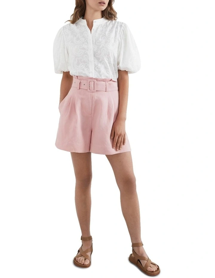 Our Belted Pleat Front Short can be dressed up or down. Featuring a high waistline with paperbag frill detailing, a matching belt, fly front with concealed hook and bar closure, a double pleat and front slant pockets. Pair with our Halter Neck Top and Darcie Leather Loafer.
