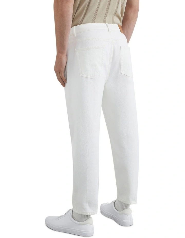 Our Cropped Straight Jean offers a new fashion style with a much straighter leg. Cropped in length, this jean features slight stretch which is great for movement and comfort. A relaxed fit with woven patch on back, these jeans are an on-trend alternative to the traditional slim fit. Wear with our Zane Leather Slide and Wide Stripe Sock. Our model is 185cm tall and wears a size 32.