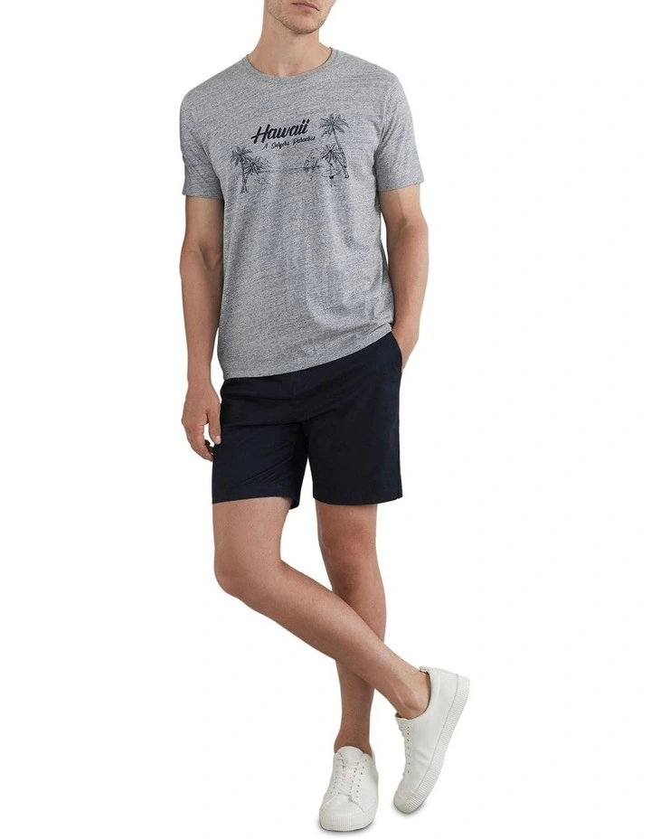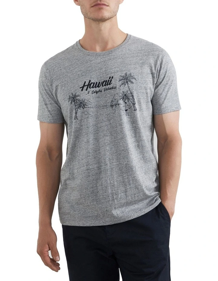 Our Hawaii T-Shirt is a must-have casual piece. Featuring a summery Hawaii graphic print with text, this comfortable tee is made from 100% BCI cotton and features a crew neck, short sleeves and a regular fit. Pair with our Slim Chino Short and Hamish Canvas Sneaker. Our model is 188cm tall and wears a size M.