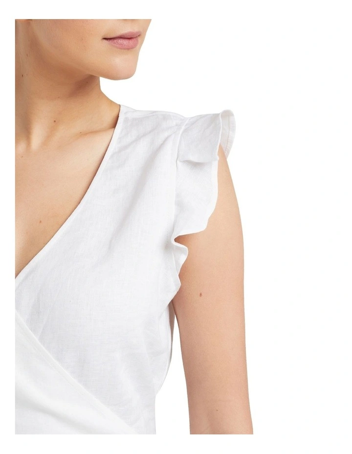 The Linen Frill Sleeve Playsuit is a great style for the warmer months. Made from soft and breathable 100% linen fabric, it features an elasticated back, self tie at the front and frill sleeve detail. Wear with sneakers or sandals and a summer hat.