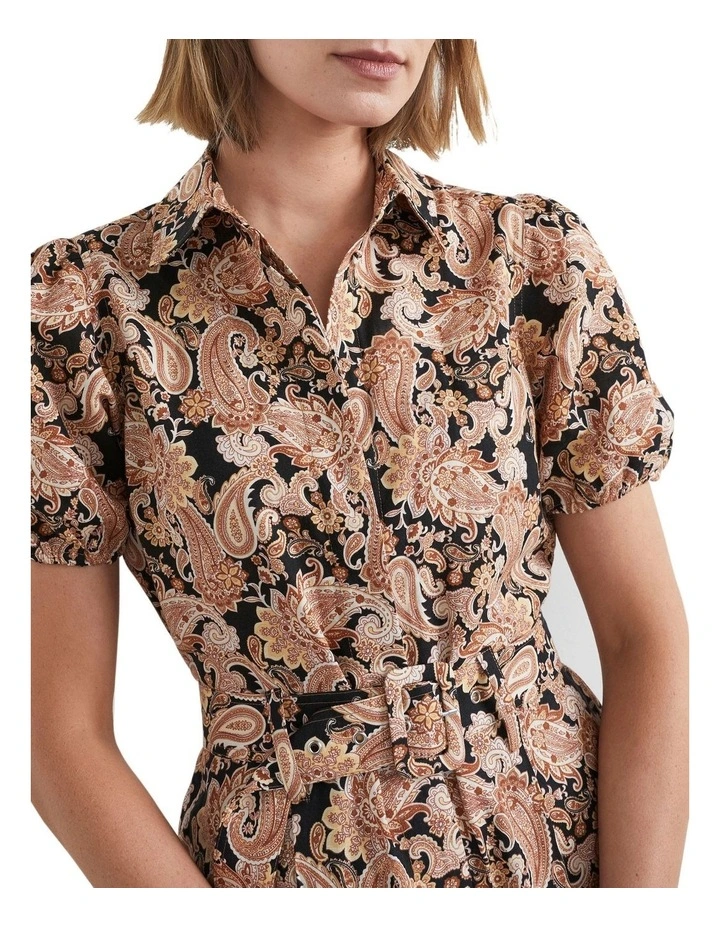Our Paisley Belted Jumpsuit is designed to deliver effortless style. Featuring our bestselling jumpsuit profile in print for the first time, this stylish jumpsuit offers a stunning paisley print with self-covered buttons, puff sleeves, belt, invisible side seam zipper and side seam pockets. Pair with our Niki Leather Heel and Jenna Shoulder Bag.