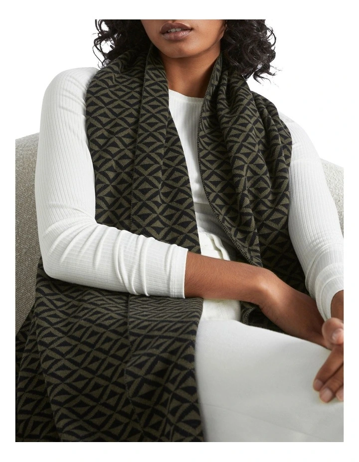 Soft against the skin, this scarf features a striking two-tone geometric pattern. It is crafted from cotton and is generously sized.